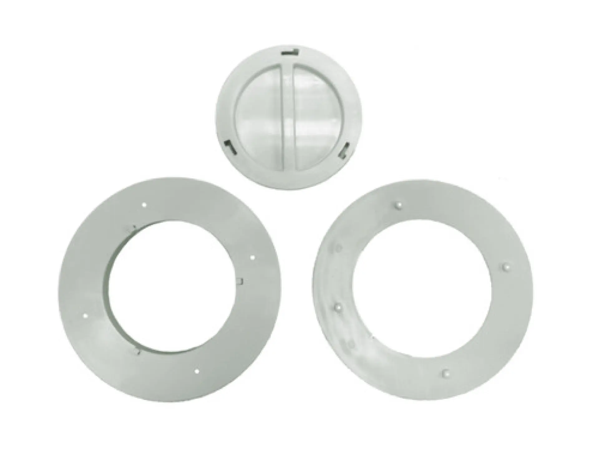 Nástěnný set pro ukotvení hadice odvodu horkého vzduchu před otvorem ve stěně. K použití pro mobilní klimatizace AMC-11P, AMC-14P, AMC-11AN*, AMC-14AN* a AMC-15A.